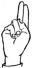 На ћирилици написано РУЖИЦА ГРАБОВЧИЋ састоји се из 15 слова [?]. Исписано ћириличном једноручном азбуком за глувонеме: